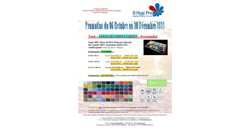 PROMOTION Spéciale "Tapis Professionnels" du 14 Octobre au 31 Décembre 2024