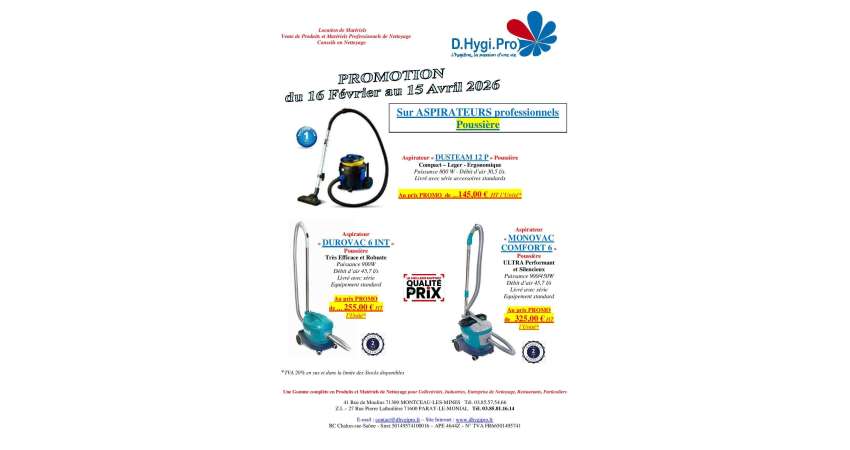 PROMOTION Spéciale "Aspirateurs Professionnels" du 16 Février au 15 Avril 2026